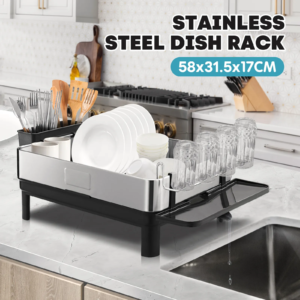 Optimise your kitchen routine with our dish drying rack, an indispensable tool for enhancing your culinary workspace. This rack is meticulously constructed from the finest 304 stainless steel, delivering exceptional resistance against rust and corrosion for sustained longevity. Its expansive configuration offers ample room to expediently air-dry various kitchen items. Plus, the innovative drainage system of this kitchen organiser channels excess water straight into the sink, safeguarding your countertops from unwanted dampness. Equipped with a 360-degree swivelling spout, the system ensures optimal water flow and drainage. Designed with versatility in mind, the rack boasts specialised compartments for securely holding plates, glasses, bowls, and cutlery, promoting a tidy and well-arranged kitchen space.