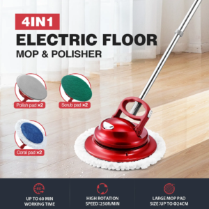 Experience a revolution in home cleaning with our versatile 4 in 1 Floor Spin Mop Cordless Electric Cleaner Scrubber Polisher. Engineered to handle a multitude of tasks, it can easily mop, wax, scrub, and polish, leaving your surfaces pristine. The device’s agile design pivots up to 90 degrees, which ensures it can access and deeply clean every corner and crevice. With the robust 12W motor and impressive rotational speeds, it effectively cuts through even the most stubborn dirt and buildup. Powered by a superior 1800mAh battery, a single 2- to 3-hour charge delivers 40 to 60 minutes of uninterrupted cleaning performance. Free yourself from the confines of power outlets and cumbersome cords with this cordless wonder, enhancing your cleaning efficiency and scope. It’s also adaptable across a variety of floor types, such as tile, hardwood, stone, and marble.