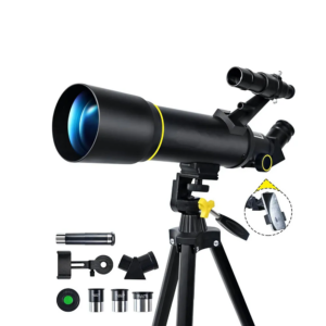 This telescope features superior 70mm aperture optics for bright, clear images of the night sky. Offering 20X-200X magnification with multiple eyepieces, it’s perfect for beginners. The portable design includes a stable, adjustable tripod and a phone adapter for capturing photos and videos of your celestial observations.