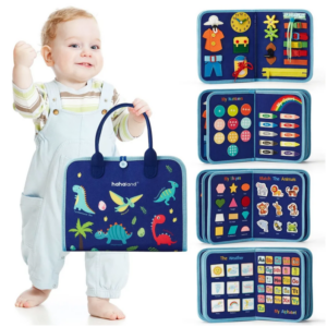 This 7-in-1 Montessori busy board engages toddlers with life skills, letters, numbers, and more. Its soft felt design features 15+ quiet activities to develop fine motor and cognitive skills. Portable and durable, it’s the perfect screen-free travel or gift toy for ages 1-4.