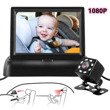 Click to Buy 38% Off Sale on Baby Car Mirror Camera 4.3” HD Display for Car Back Seat Full View Infant Night Vision Rear Facing Seat for Baby 1080P