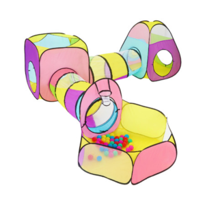 This 5-in-1 children’s playhouse is not only a fantastic way to help kids develop arm and leg muscles as well as gross motor skills, but also a great tool for sparking their curiosity and creativity. Designed to provide endless fun and laughter, this indoor playground features a square tent, a triangle tent, two crawl tunnels, and a large ball pit filled with 50 ocean balls. You can assemble all parts into an engaging play activity centre or customise them to create a ball pit playground, racing tunnels, mazes, or magic caves. The triangle tent includes a sticky ball dart board, and the ball pit comes with a basketball hoop, adding even more excitement and inspiration for your child. Made from high-quality 190T polyester taffeta and reinforced with durable, flexible steel, this kids’ teepee is safe, kid-friendly, and built to last. With its bright colours and versatile design, it’s sure to become a favourite for your little ones.