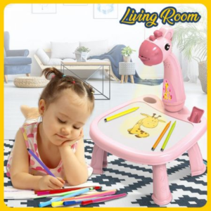 Develop your child’s drawing skills and unlock their imagination with the Kids LED Projector Drawing Table Art Painting Board Desk. Crafted from premium, non-toxic plastic, this educational toy includes three projection slides, each featuring eight distinct patterns. Toddlers can easily paint according to the patterns projected by the LED projector onto the table or a picture album. Enhanced with a music function, this drawing desk captivates a child’s attention, encouraging them to engage in projection painting for longer periods. Suitable for children aged three and up, the projector drawing tool is safe, durable, and designed for years of creative use.