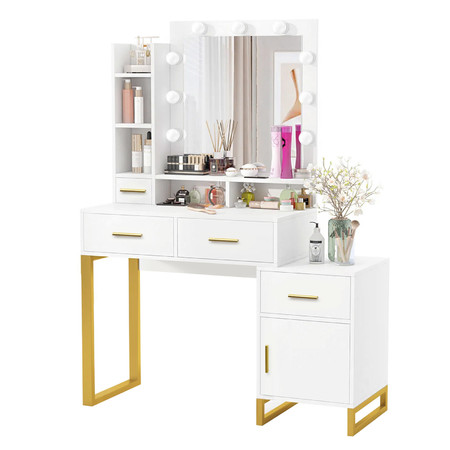 Secure the mirror to the walls via the anti-tip kit for added safety. Organise effortlessly with 4 open shelves and 4 spacious drawers, ideal for cosmetics, tools, or accessories. Quick to assemble and designed for daily use or special occasions, this vanity transforms routines into luxe experiences.